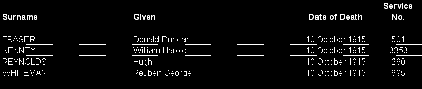 Spirits of Gallipoli - Chronology - 10 October 1915